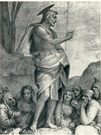 Рассмотрите репродукцию картины "Проповедь Иоанна Крестителя" и сравните образы Иоанна , созданные евангелистом Матфеем и художником 16 века Андреа дель Сарто.